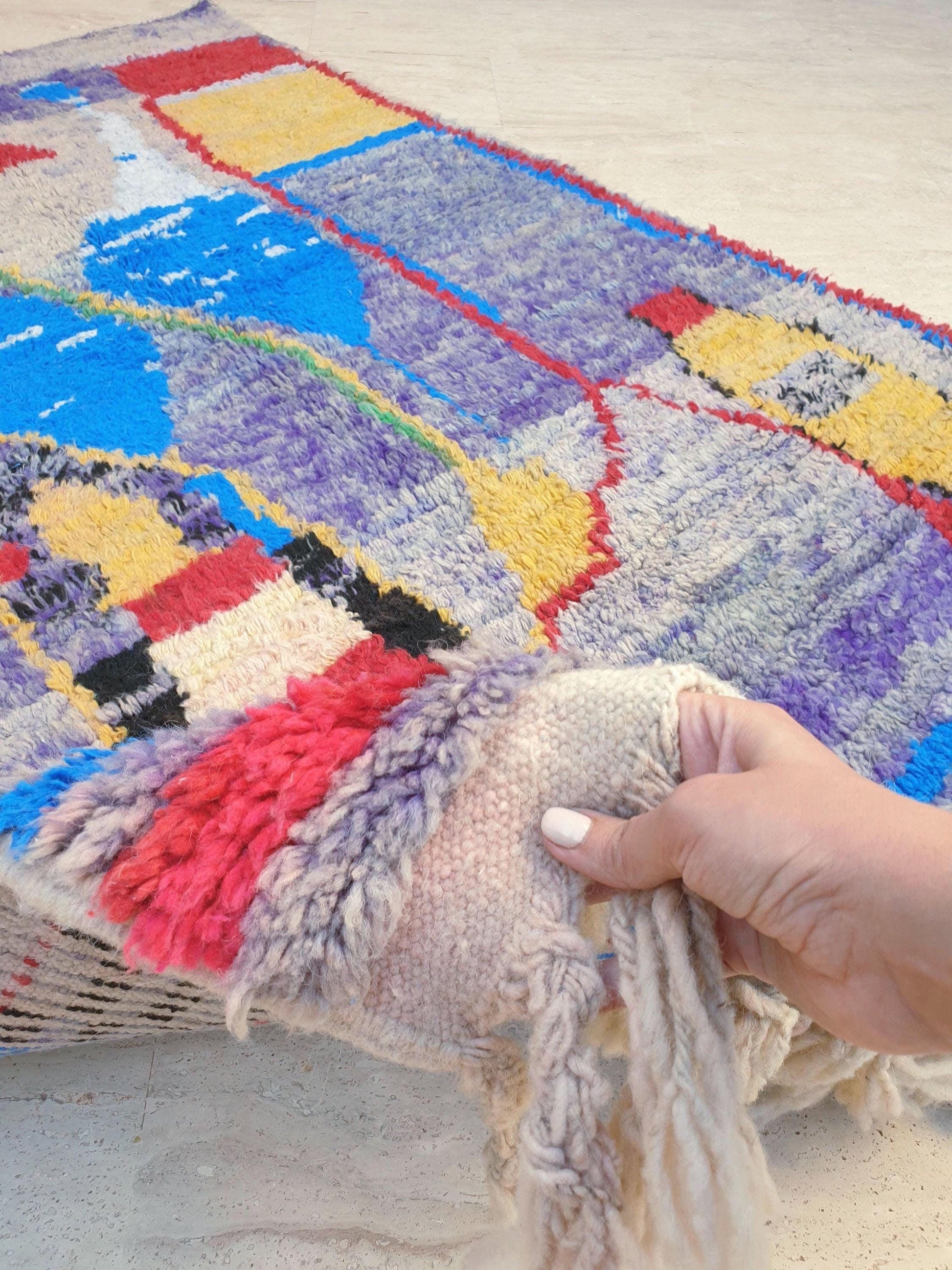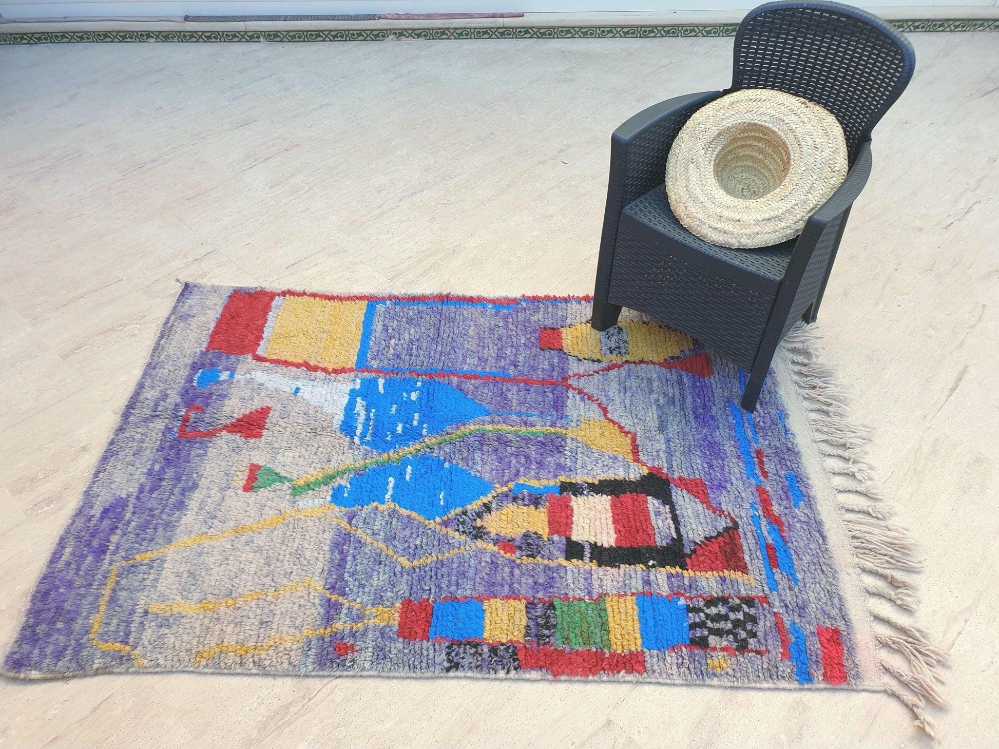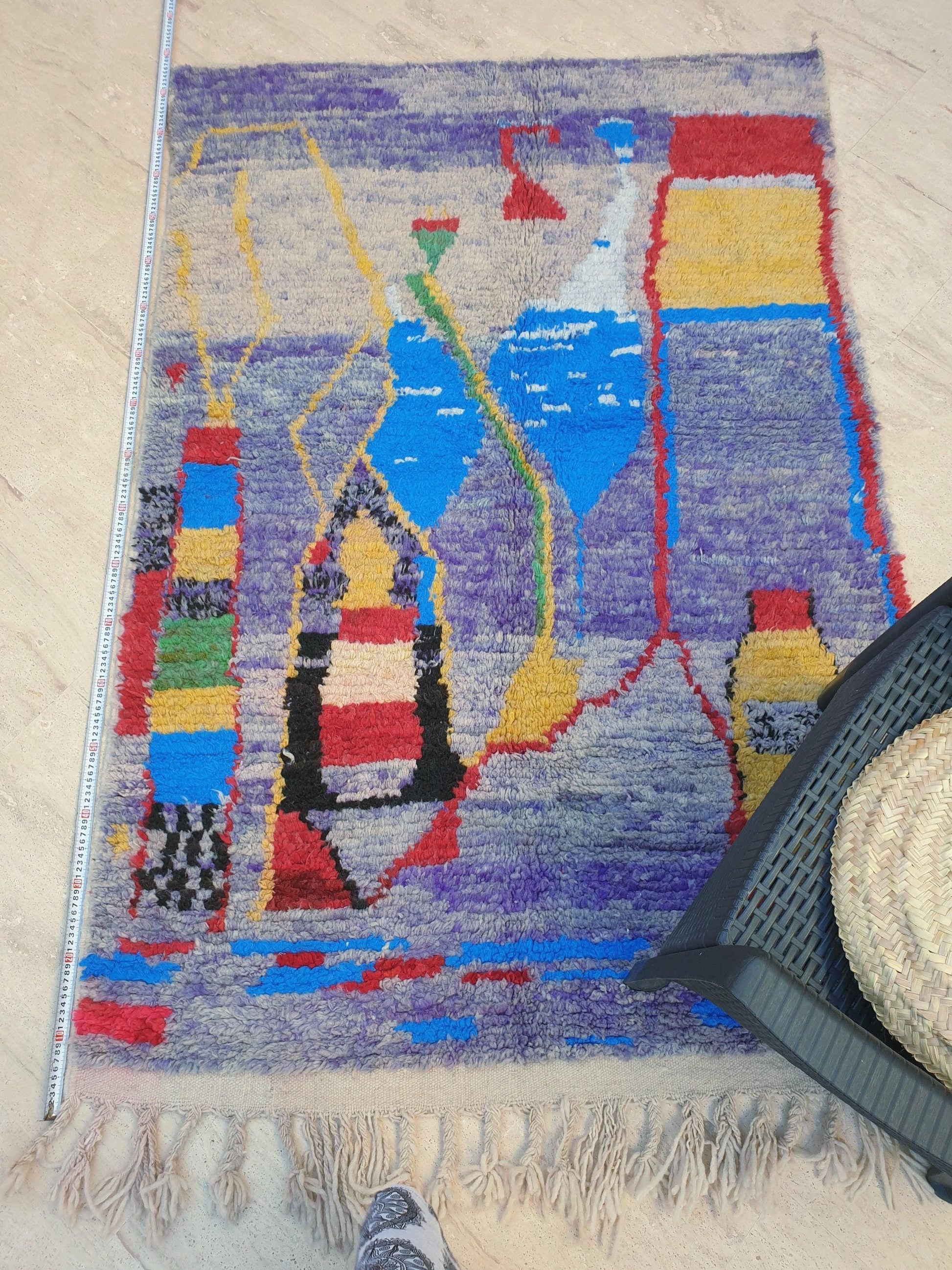 50% OFF CLOSING SALE Gorgeous Moroccan Rug boujaad rug 4.1x6.3 Purple Wool rug, living room rug, Unique Abstract Red Yellow rug bedroom rug