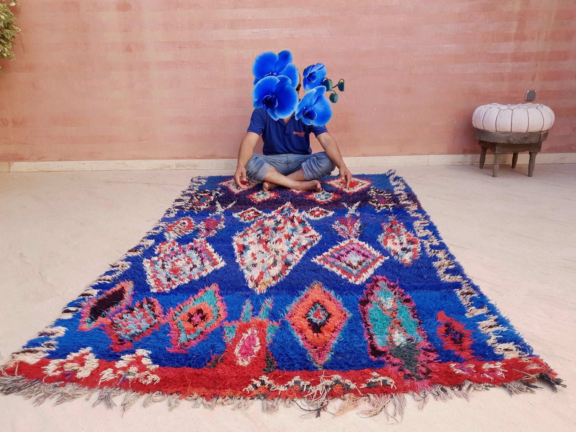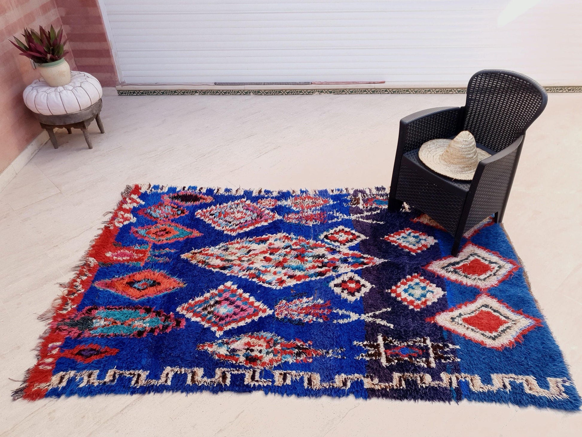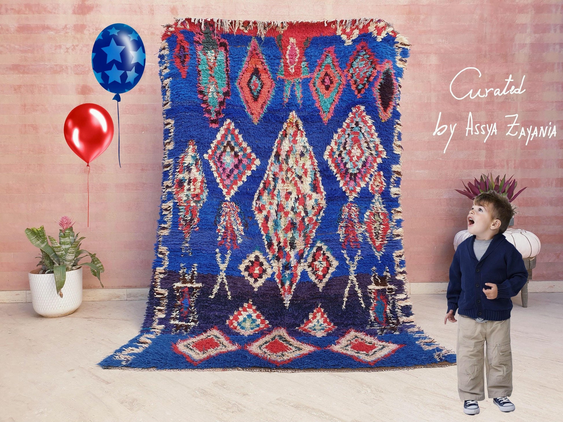 50% OFF CLOSING SALE Majestic Vintage Moroccan rug 5.2x8 "Blue Orchid" Unique Stunning blue Azilal Berber rug, boujaad rug boucherouite rug