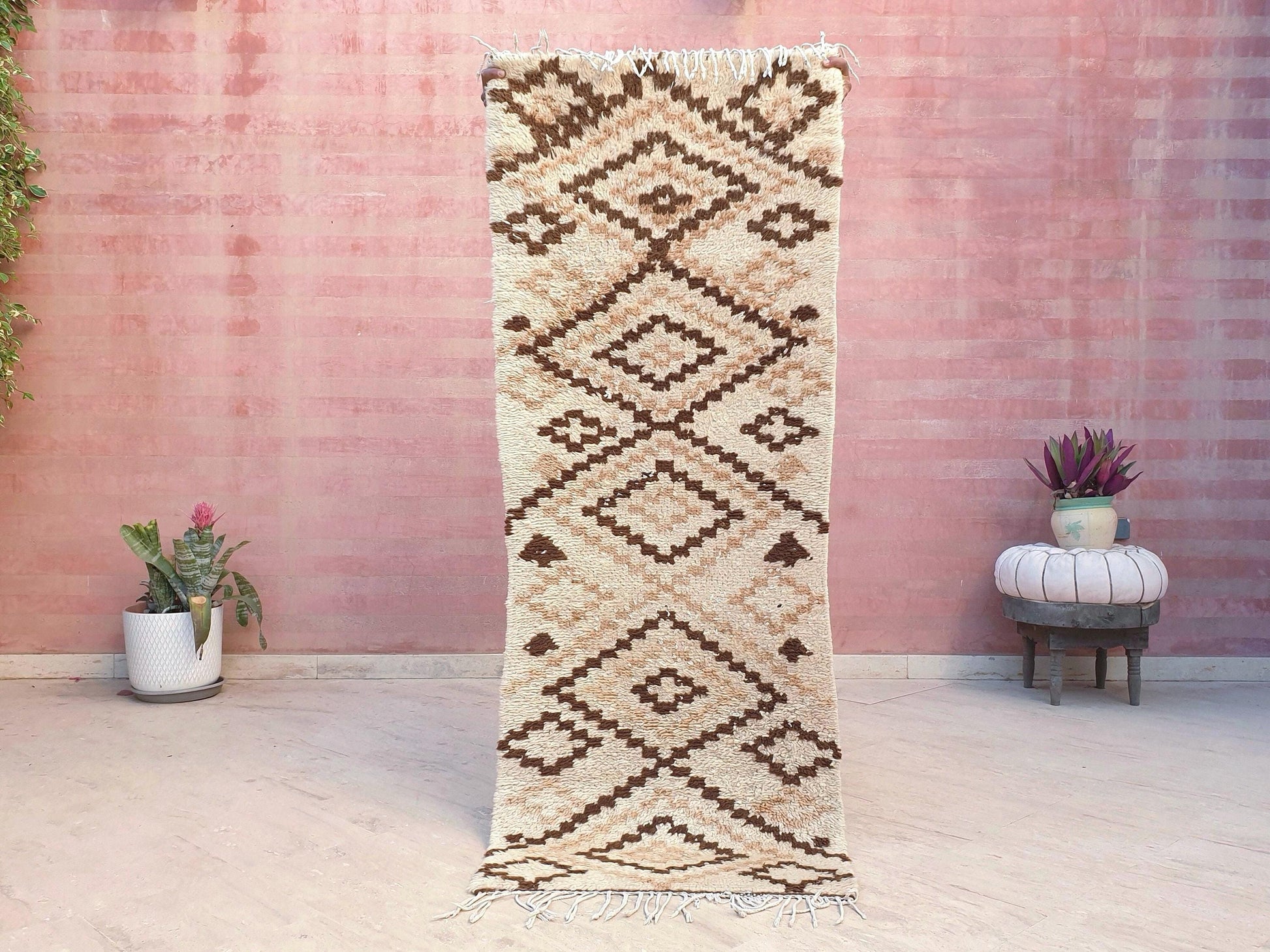 50% OFF CLOSING SALE Vintage Moroccan Rug 2.4x6.4 Gorgeous offwhite Beige rug | geometric beige brown azilal rug boujaad rug | entr