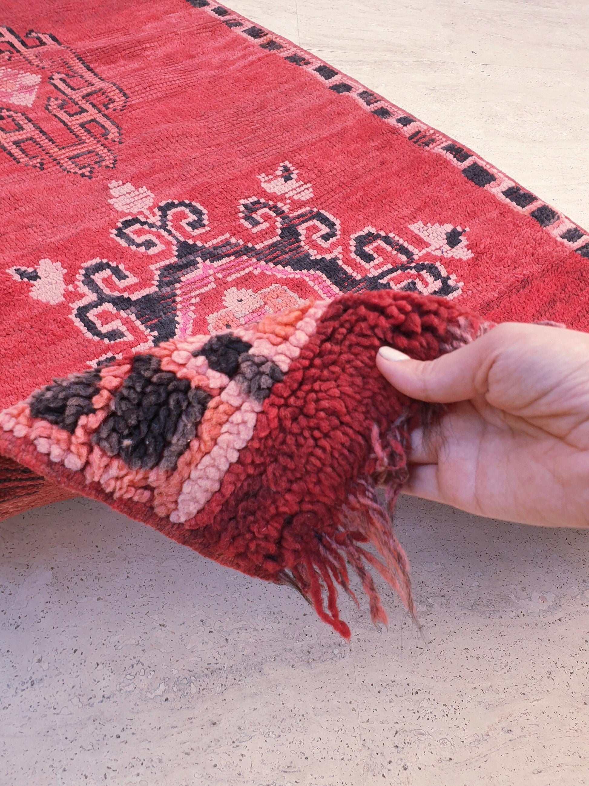 50% OFF CLOSING SALE Vintage Moroccan Rug 3.1x7.6 Gorgeous Unique Red Boujaad Statement Runner Rug, bedroom rug, Abstract accent rug
