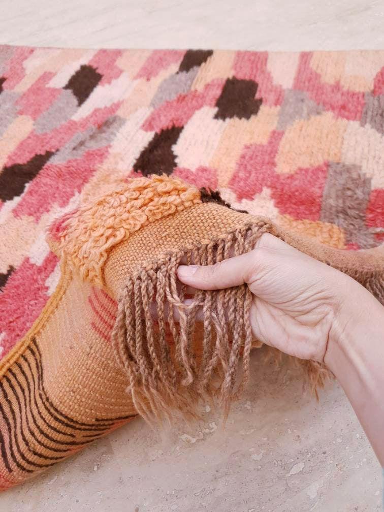 50% OFF CLOSING SALE Vintage Moroccan rug 4.1x10.5 Stunning Boujaad rug, Checkered Boujad Rug, blush warm tones muted rug living room rug