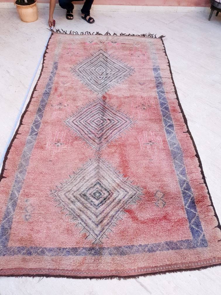 This one is one of my personal favorites.. Very rare type. Blush  pink boujaad rug beauty blush pink and lavender tones. One of a kind statement  area rug.