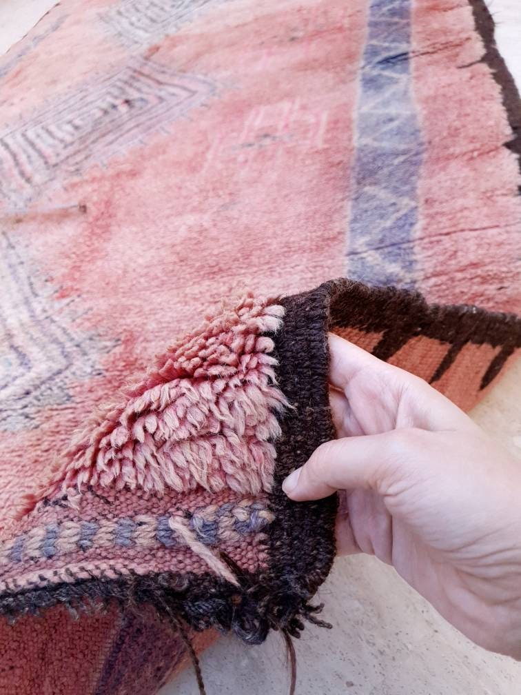 👉🏻 this beauty has some little imperfections, repairs  and some color fading, typical of authentic vintage moroccan rugs which adds to its character.  For the lovers and conoisseurs of the unique vintage moroccan tribal rugs.