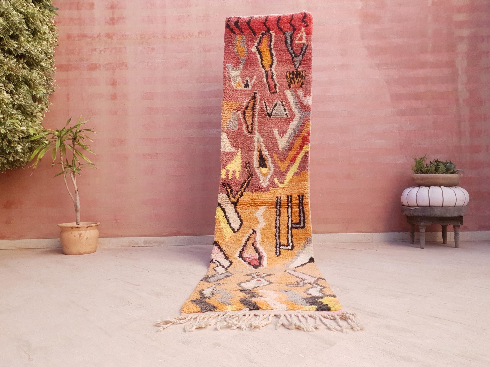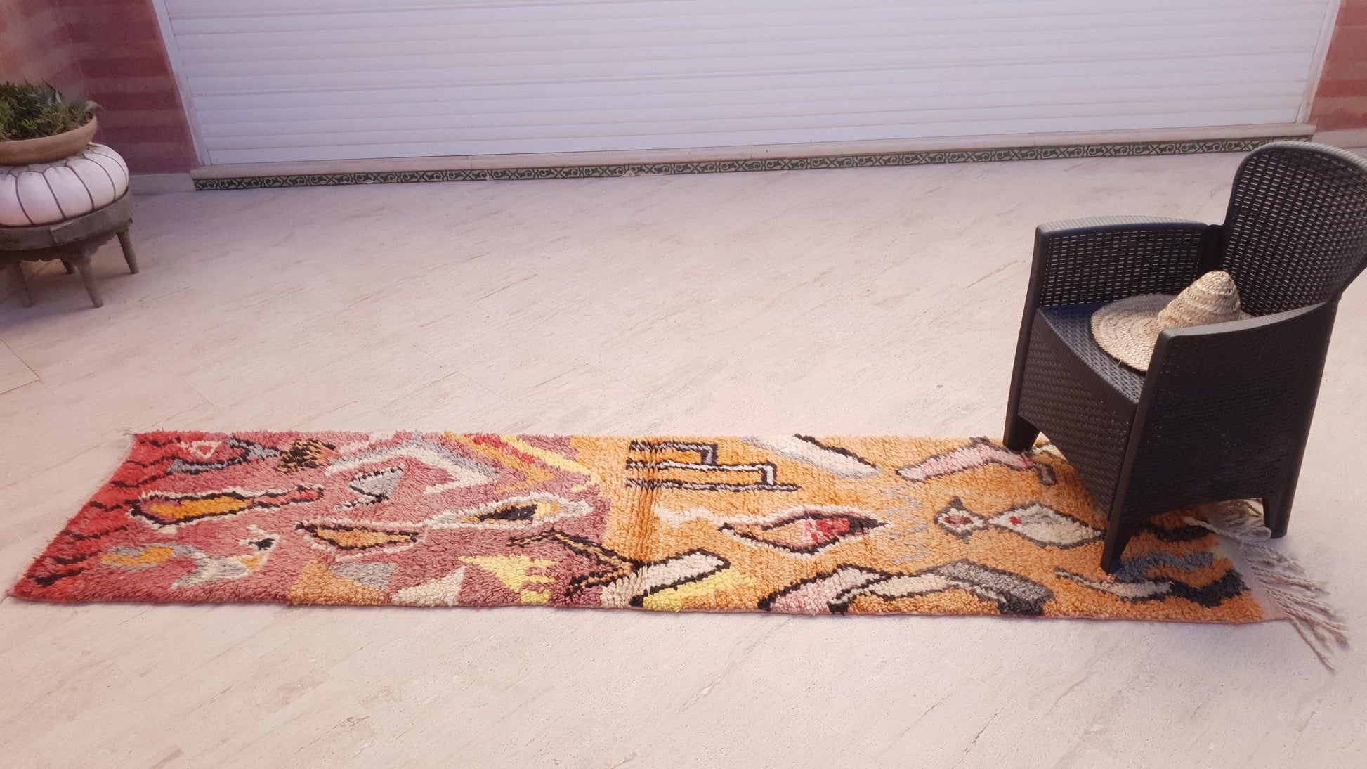 Beautiful Moroccan runner rug 2.2x9.6 unique colorful abstract moroccan rug, handmade boujaad rug, soft hallway rug