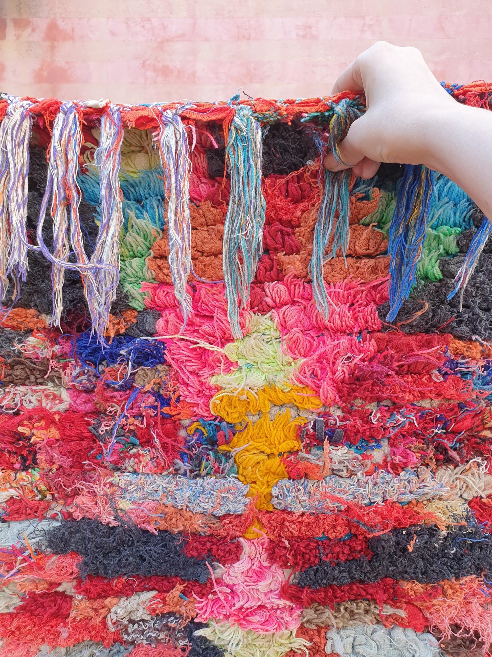 Beautiful Moroccan runner rug 2.8x6.6 Colorful Boucherouite Rug, Tribal Morocco accent rug