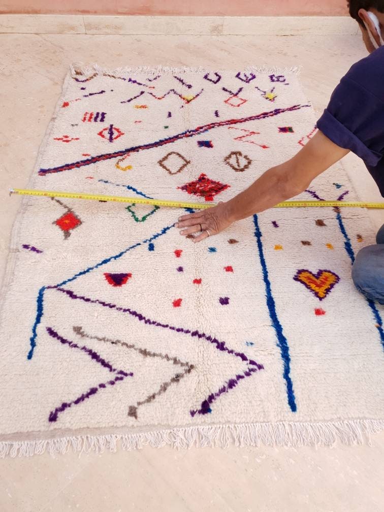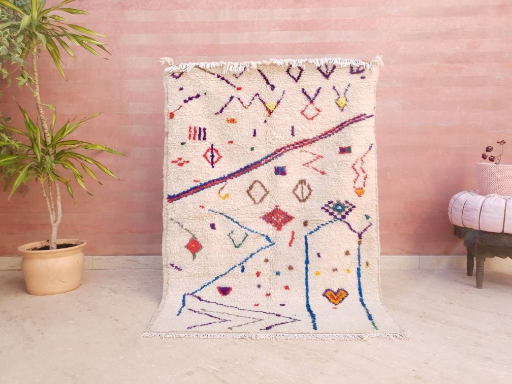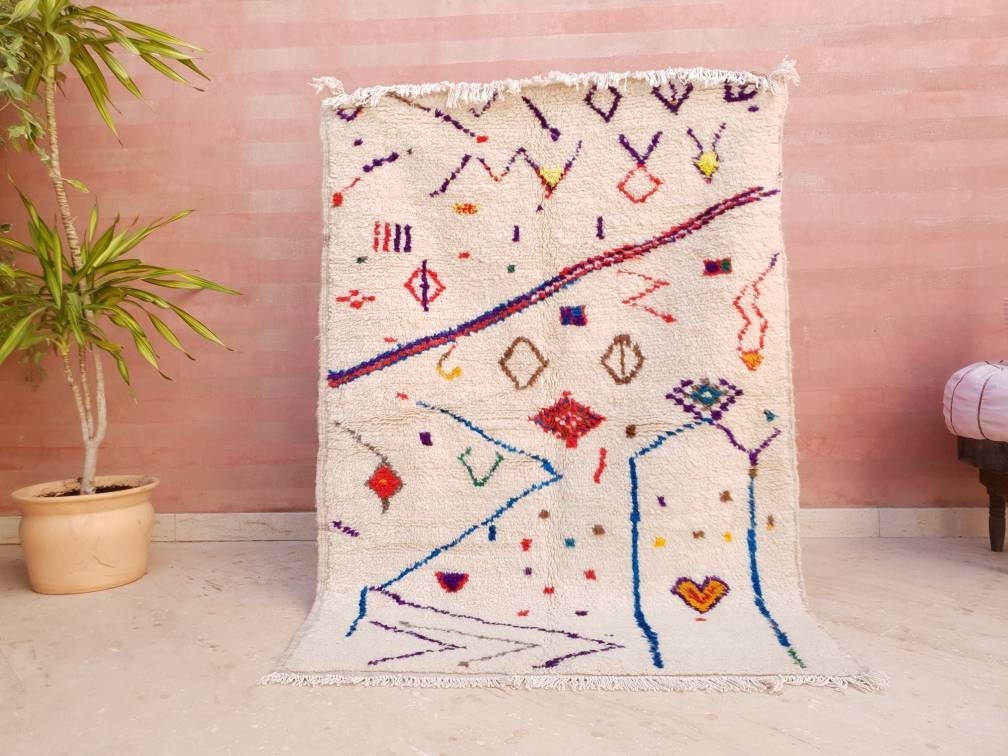 Finest Moroccan Rug 3.6x5 Soft Azilal Rug "Heart at Home" Authentic Berber carpet Nursery morrocan Rug Beni Ourain rug, living room rug