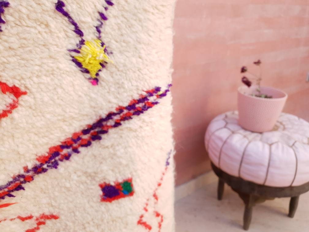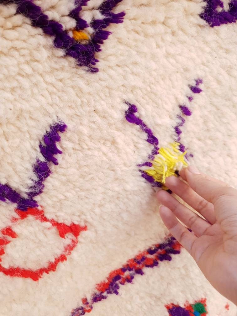 👉Our Azilal rugs the real Azilal ازيلال. Both vintage and new we offer are made traditionally (the real authentic Azilal rug with the small details, softest handspun wool and wool braids 1-2 color braids. Not to be confused with the mainstream knockoffs online. Please message me should you want more close up photos!🌸