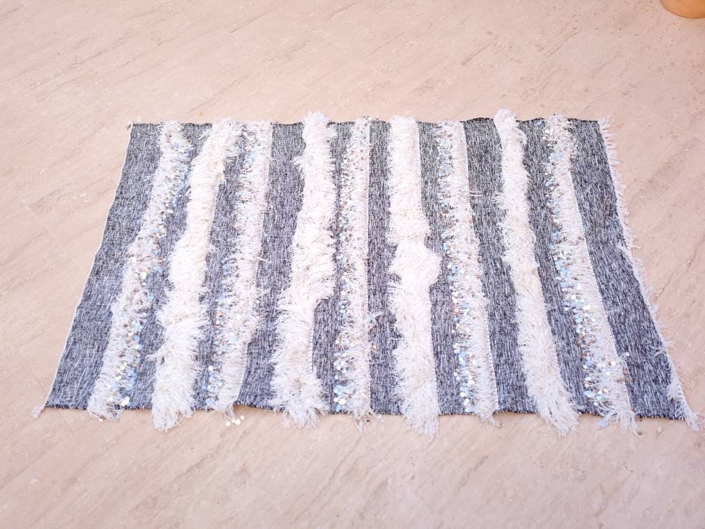 ○ Beautiful Moroccan wedding blanket with sequins.  Lovely mix of gray and white. Handmade in my Berber community. Makes an original beautiful bedroom or sofa throw.