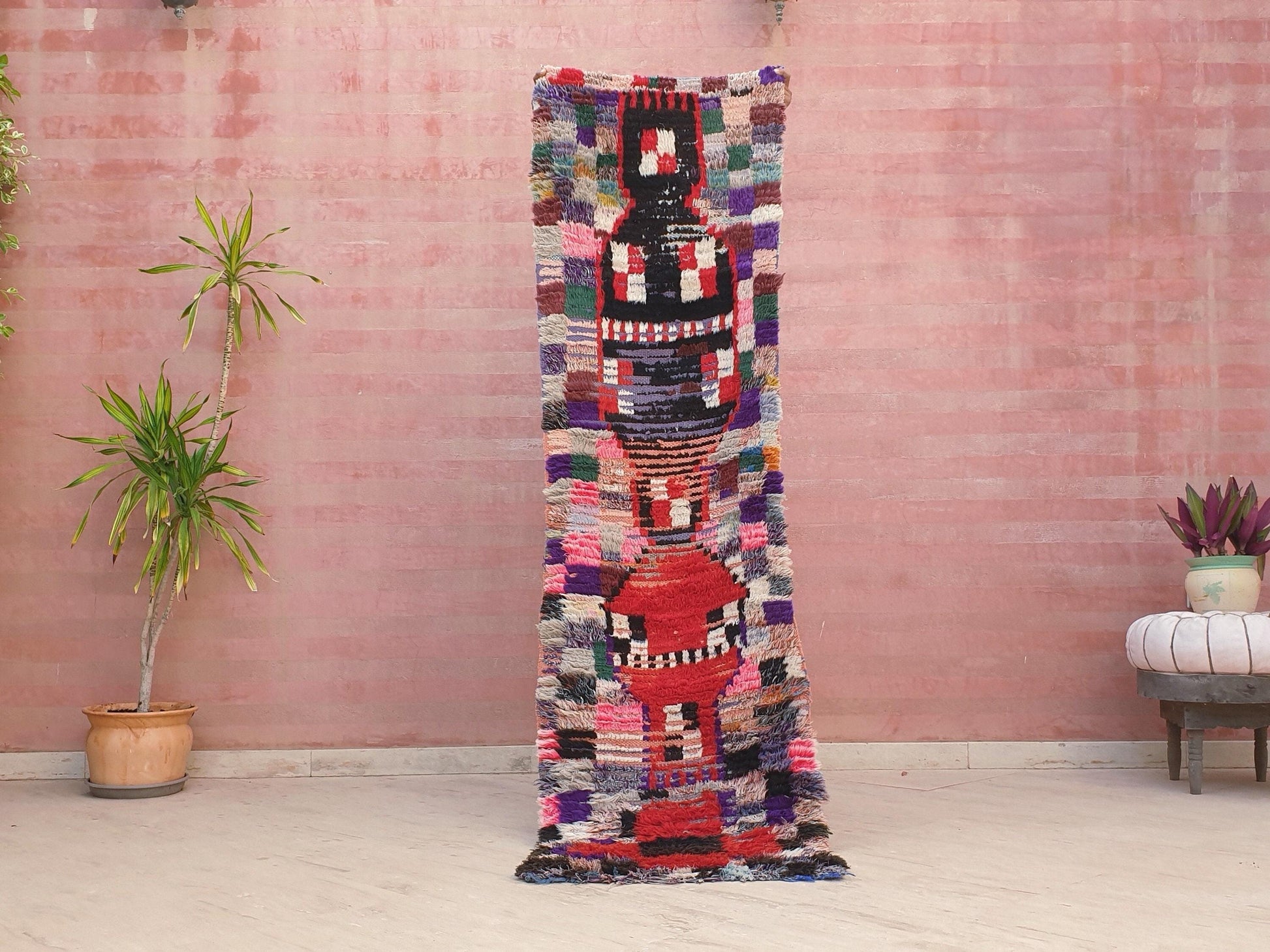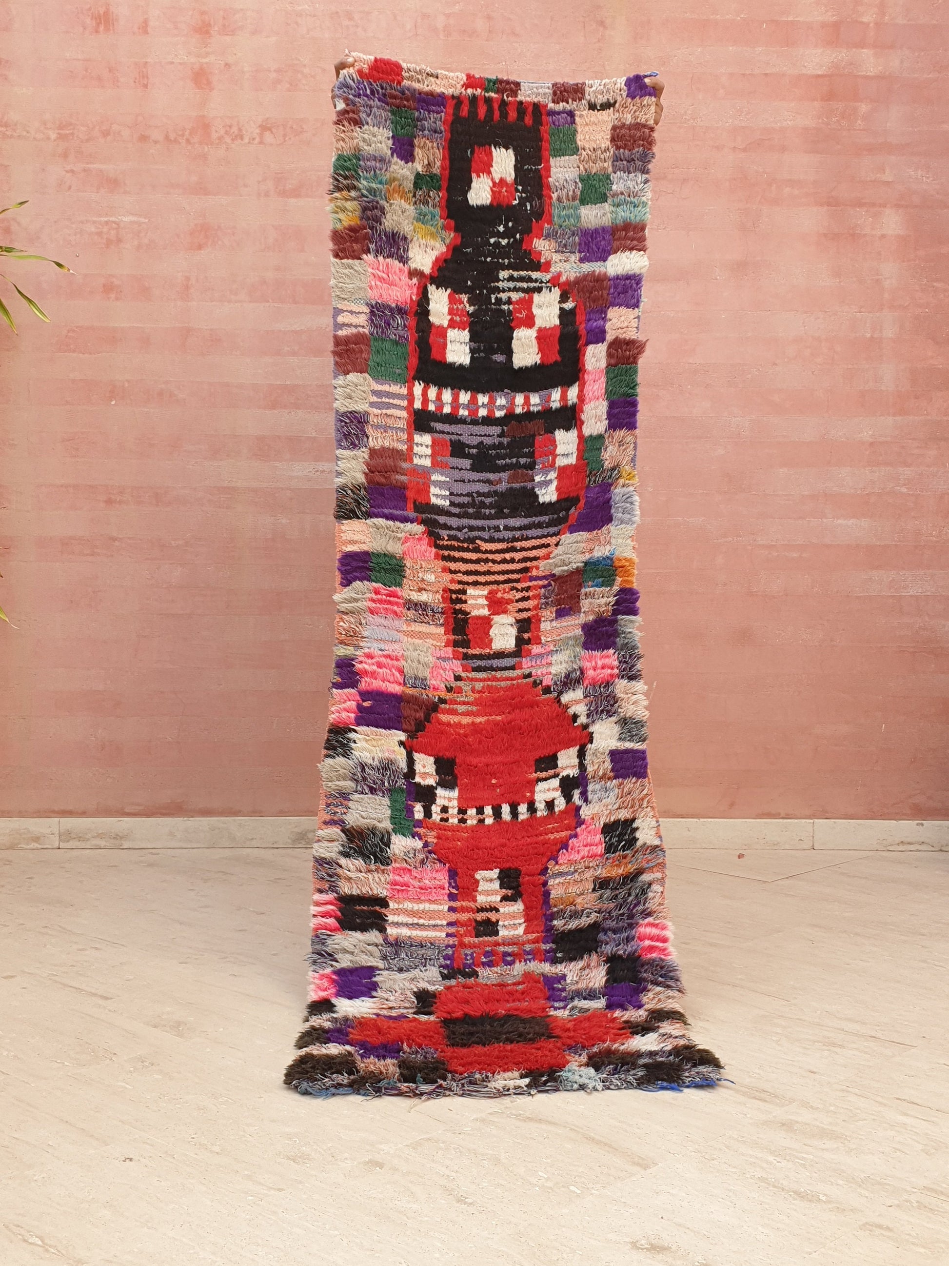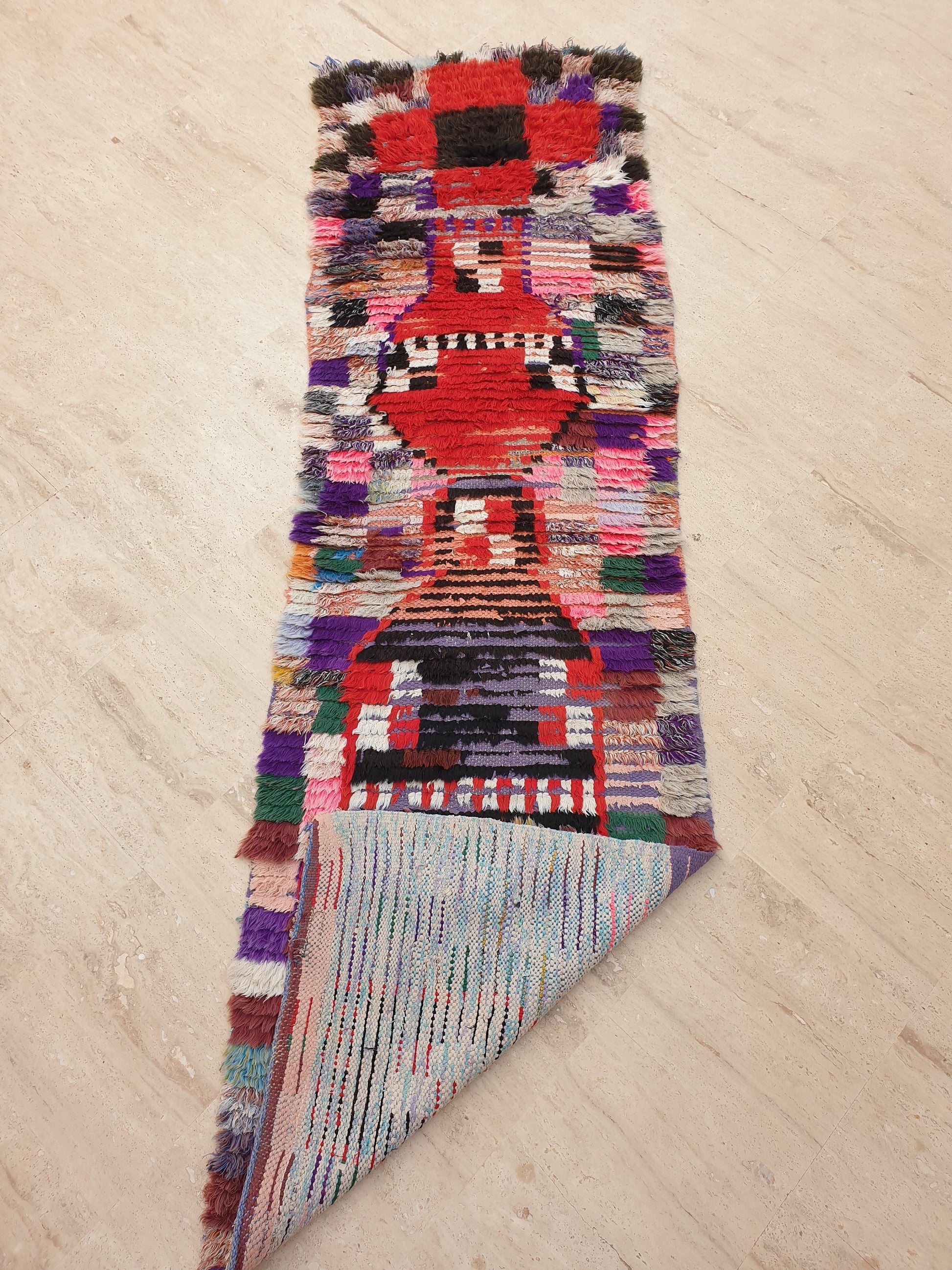 Vintage Moroccan Rug 2.2x7.6 Super Pretty Runner Rug | Boujaad Rug | Antique Berber Boucherouite Rug | Hallway Rug | Vintage Entry way Rug