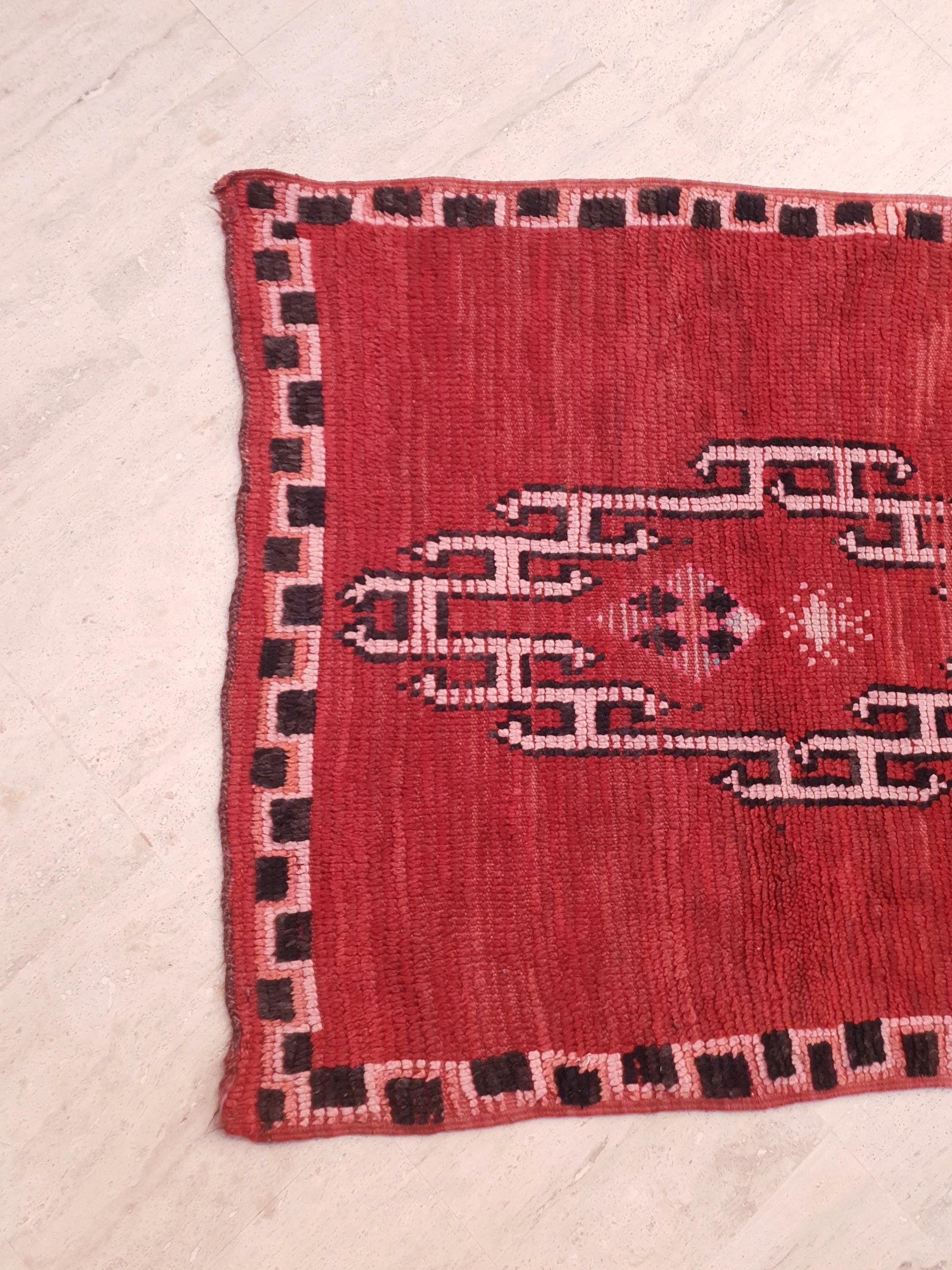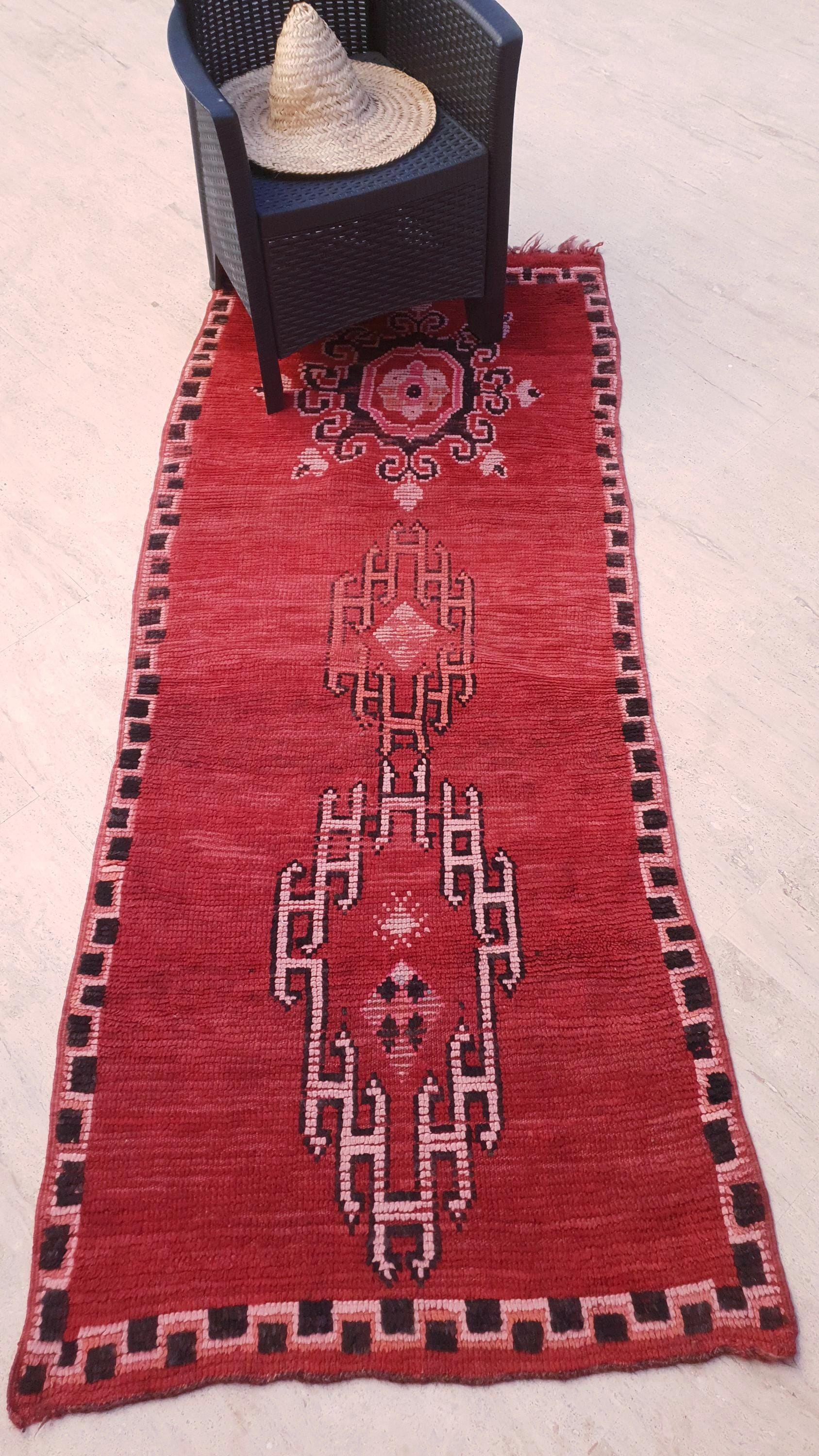 Vintage Moroccan Rug 3.1x7.3 Gorgeous Unique Red Boujaad Statement Runner Rug, bedroom rug, living room rug Abstract ac