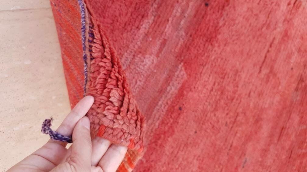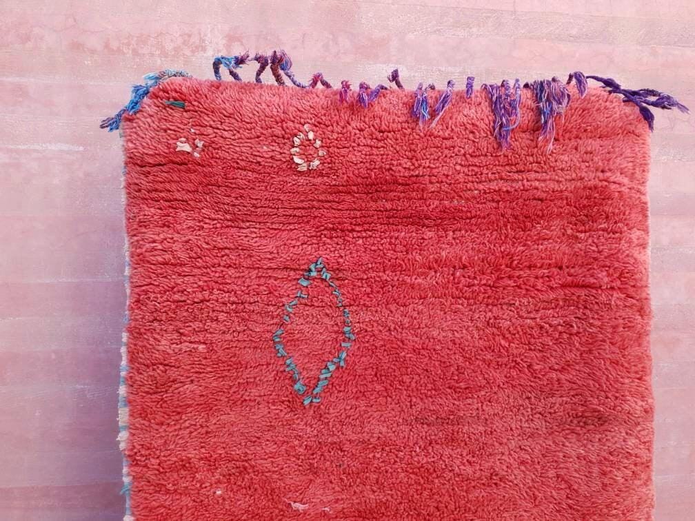 - Beautiful Unique Vintage Moroccan rug. One of a kind vintage boujaad rug with muted red pink hues and subtle abstract and berber symbols. Collector rug . Unique in Great condition.