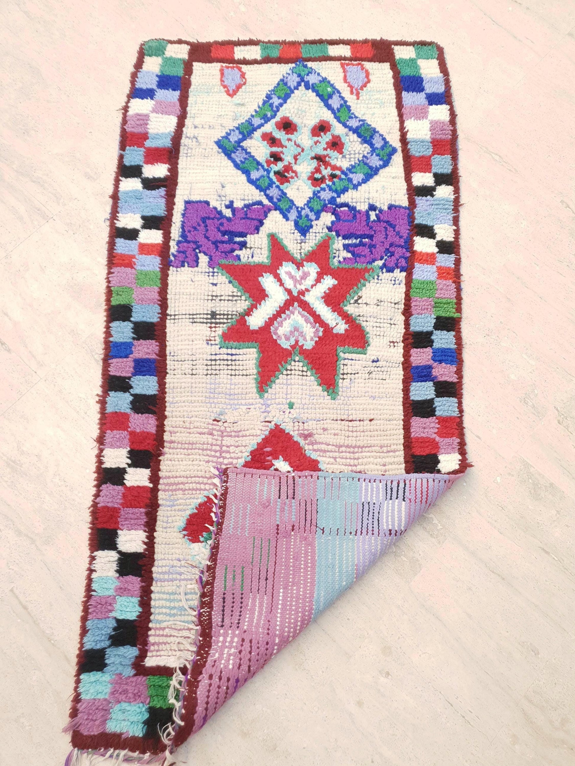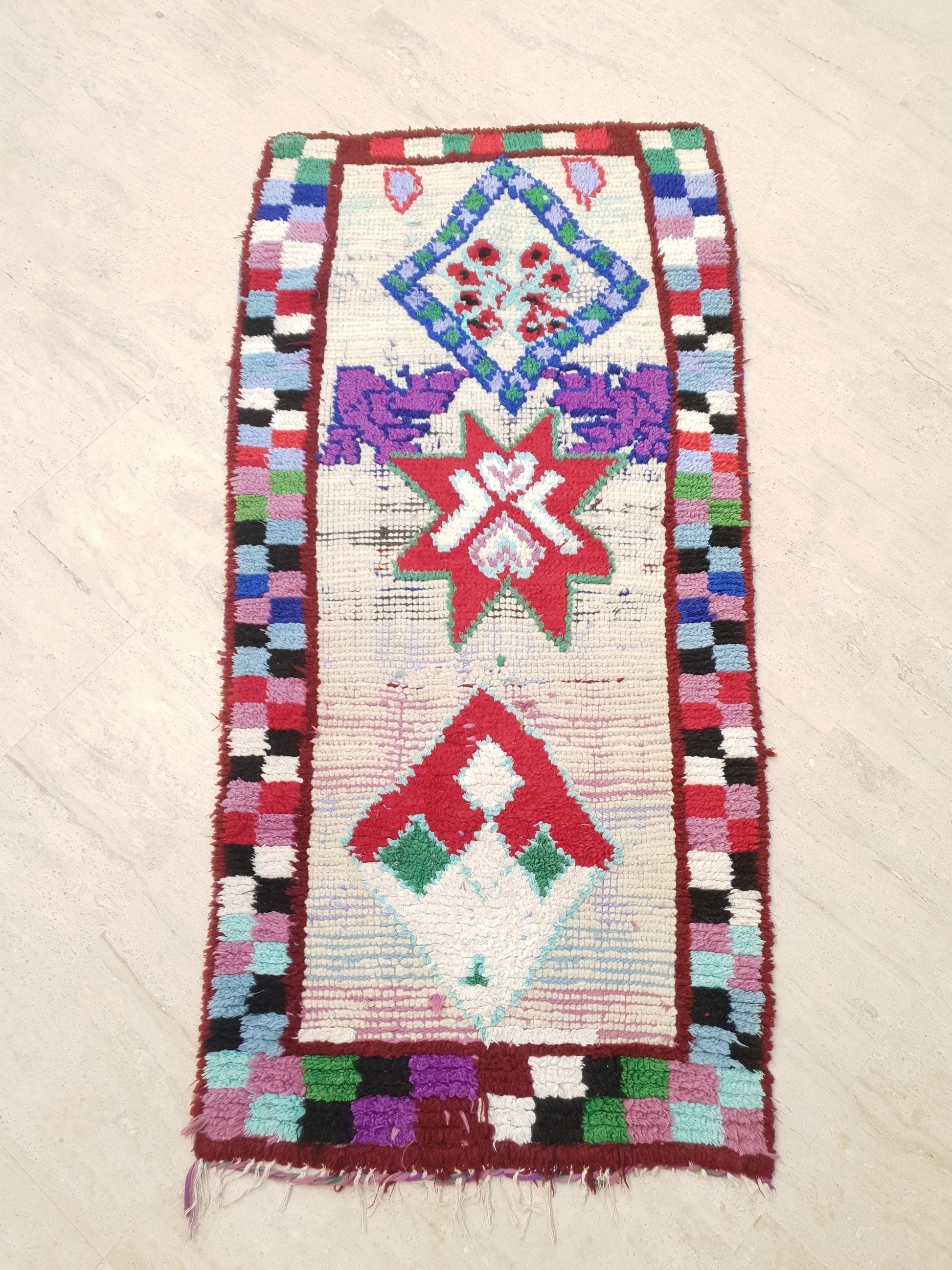 ○ Collector rug . One of a kind piece authentic moroccan vintage runner rug. Intuitive design by previous owner