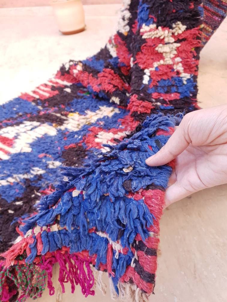 Vintage Moroccan rug 3.5x7.5 Boucherouite unique Azilal rug Morrocan rug "America" bedroom rug bedside rug bohemian living room rug VAZ21