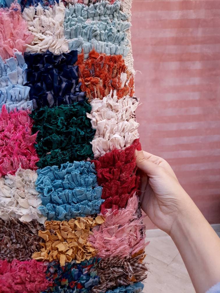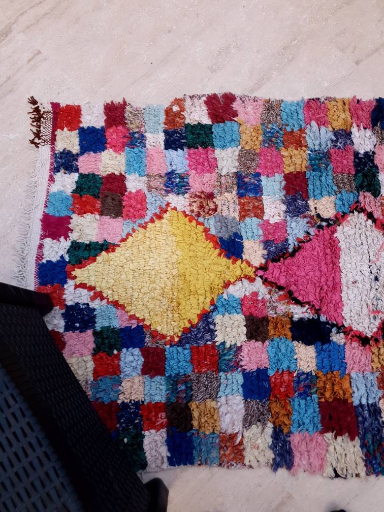 ○ such a Beautiful colorful unique Vintage Moroccan runner rug. One of a kind abstract vintage mix of wool and boucherouite berber rug with uniquely intutively woven colors.