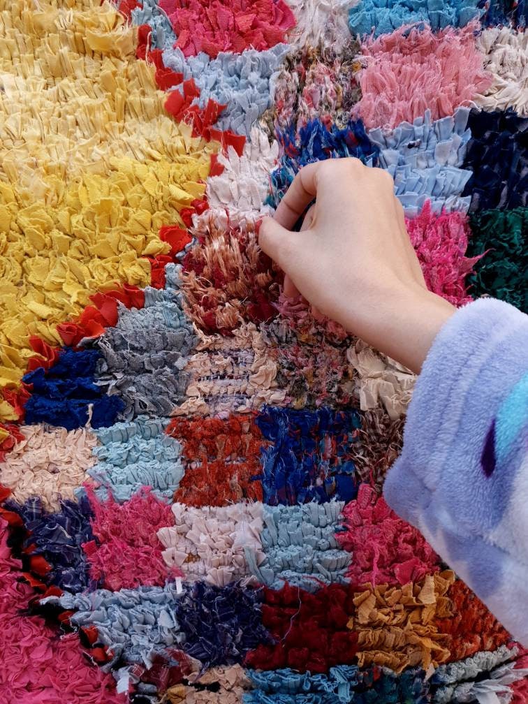 ○ This beauty is subtly wavy in width, which is the staple of handmade loom woven authentic vintage berber moroccan rugs, and adds to its character that appeals to the Vintage conoisseurs and seekers of the unique berber rugs. Please see photo alligned with measuring tape.