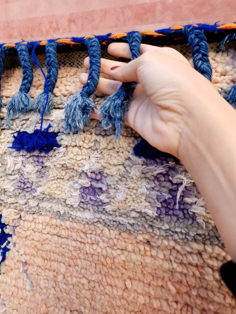 (see close up photos #7,#8,#9) little flaws and or discoloration/some stains typical of authentic vintage moroccan rugs which makes it even more unique.