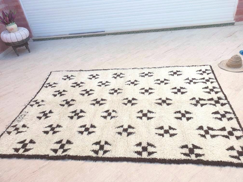 Marvelous vintage gem. BENI OURAIN Amazing vintage rug. And no other like it! Intutively woven work of art from my middle atlas beni ourain origins. Stunning warm offwhite natural brown yarn . And it is 100% authentic and unique.