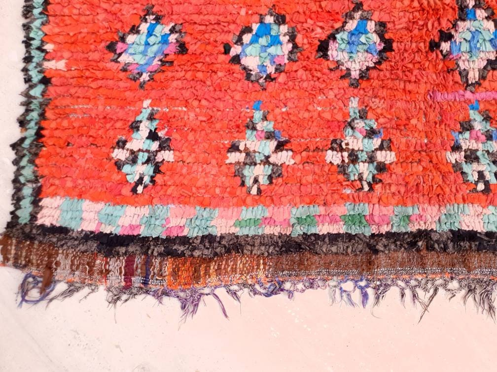 Pretty unique moroccan rug. sturdy heavy Boucherouite rug with a lovely unique design. Made of boucherouite recycled rag rug. Authentic moroccan rug. Washable and sturdy.