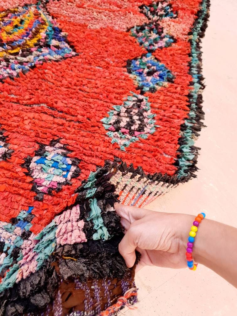 Vintage Moroccan Rug 5x7.7 Red bold vintage Boucherouite Rug, bedroom rug living room hallway rug berber area rug