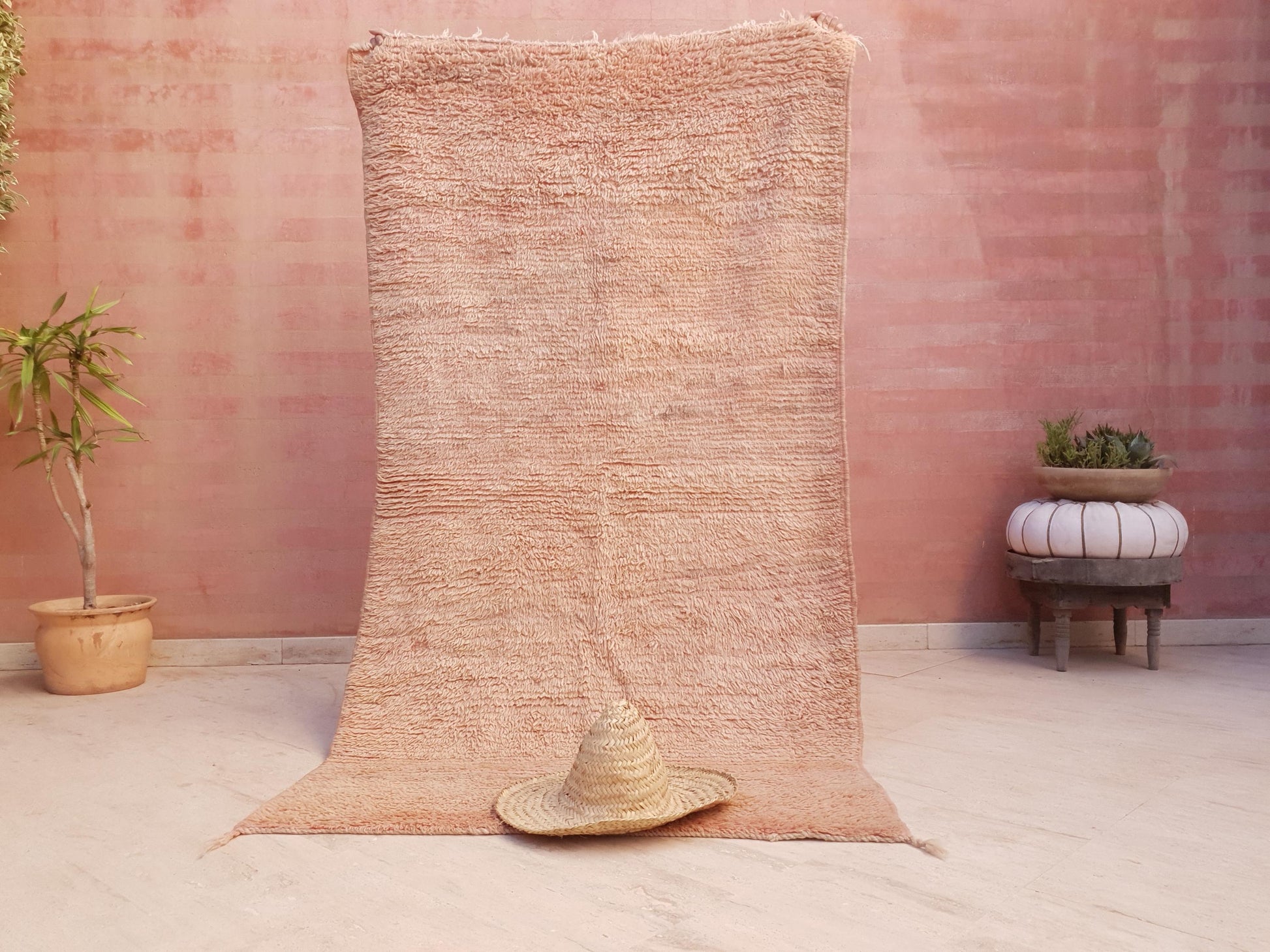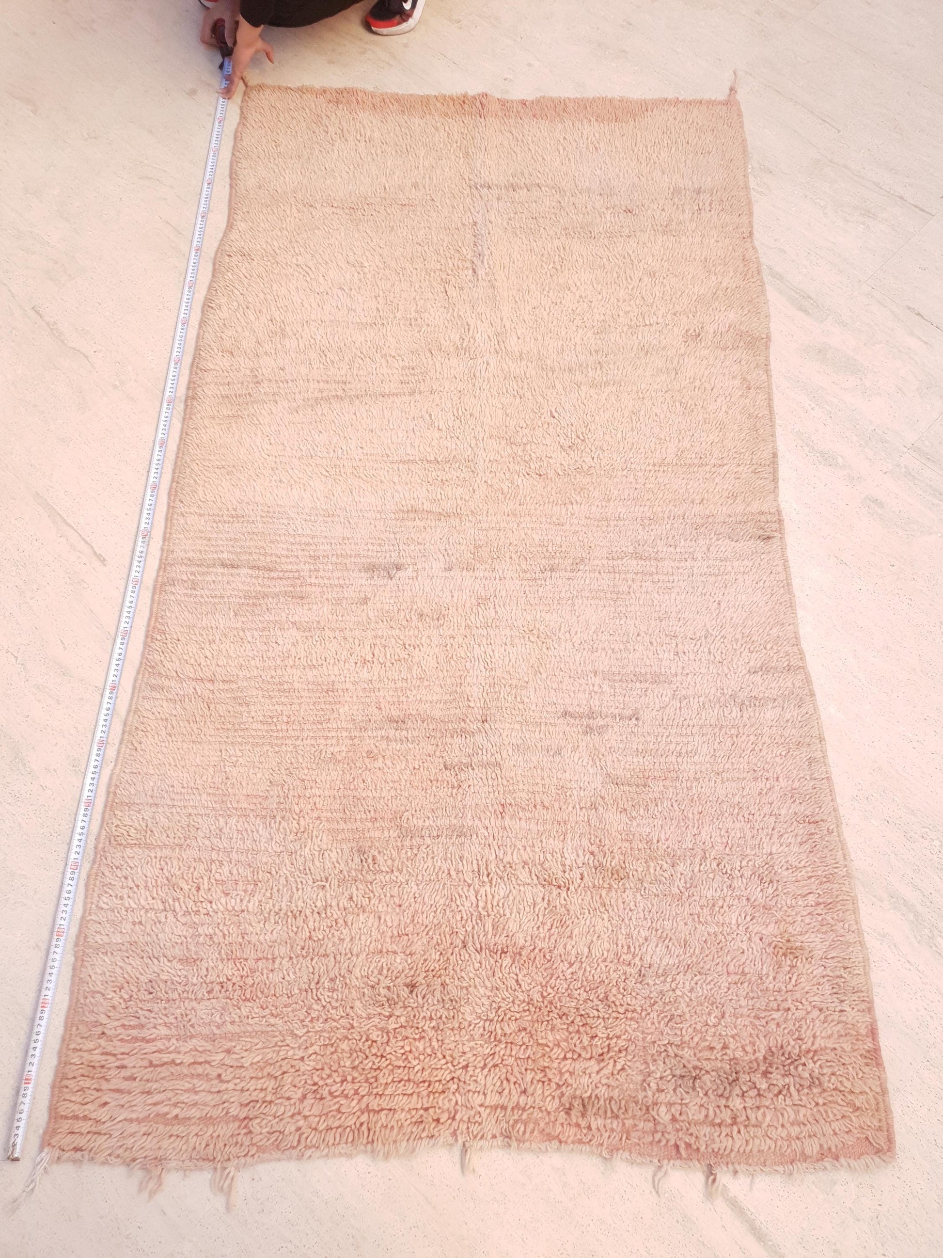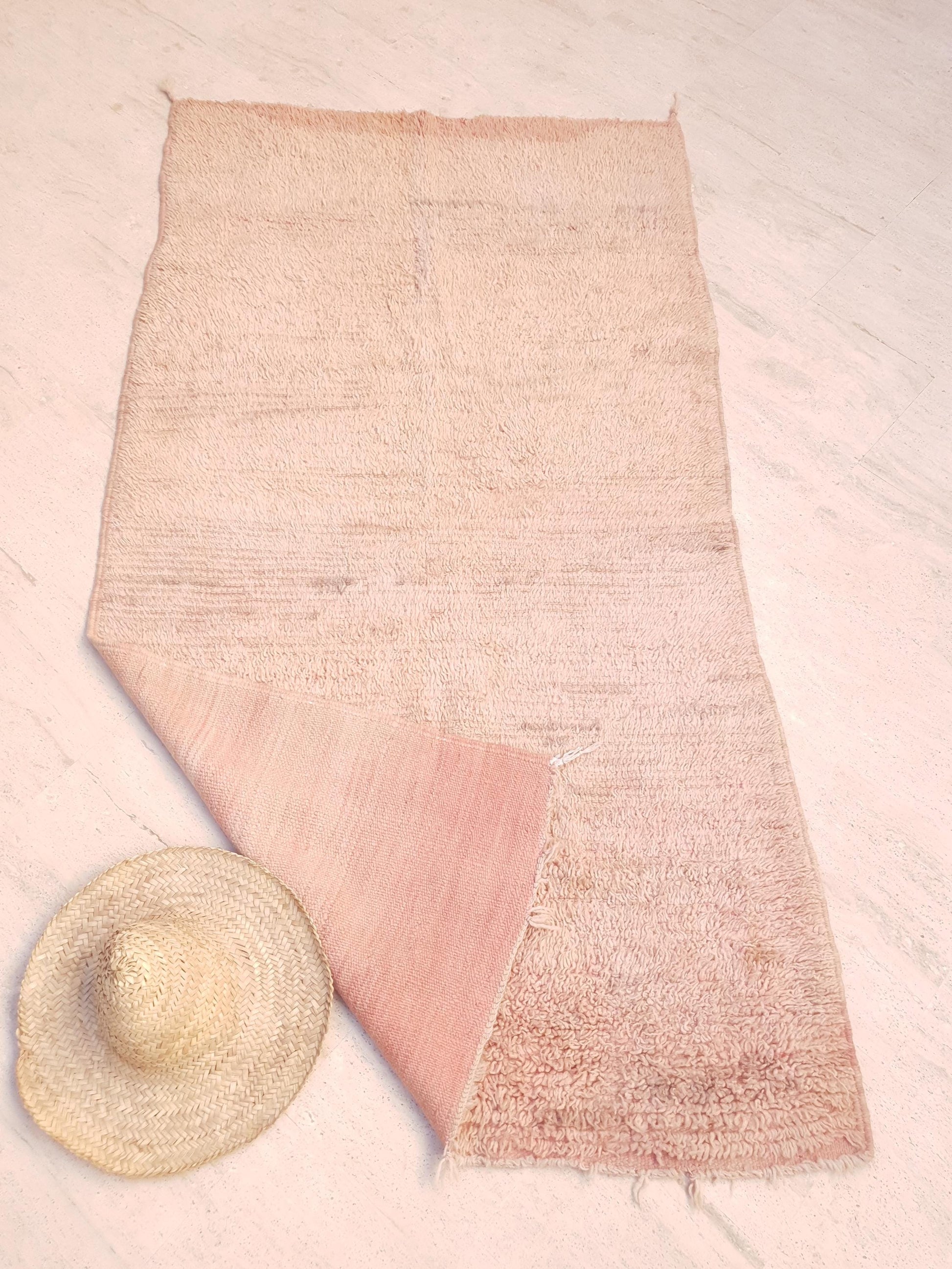 Vintage Moroccan Rug Gorgeous Blush Pink Peac Boujaad rug 3.8x7.2 Sands unique blush soft tones rug, bedroom beni ourain rug faded solid rug